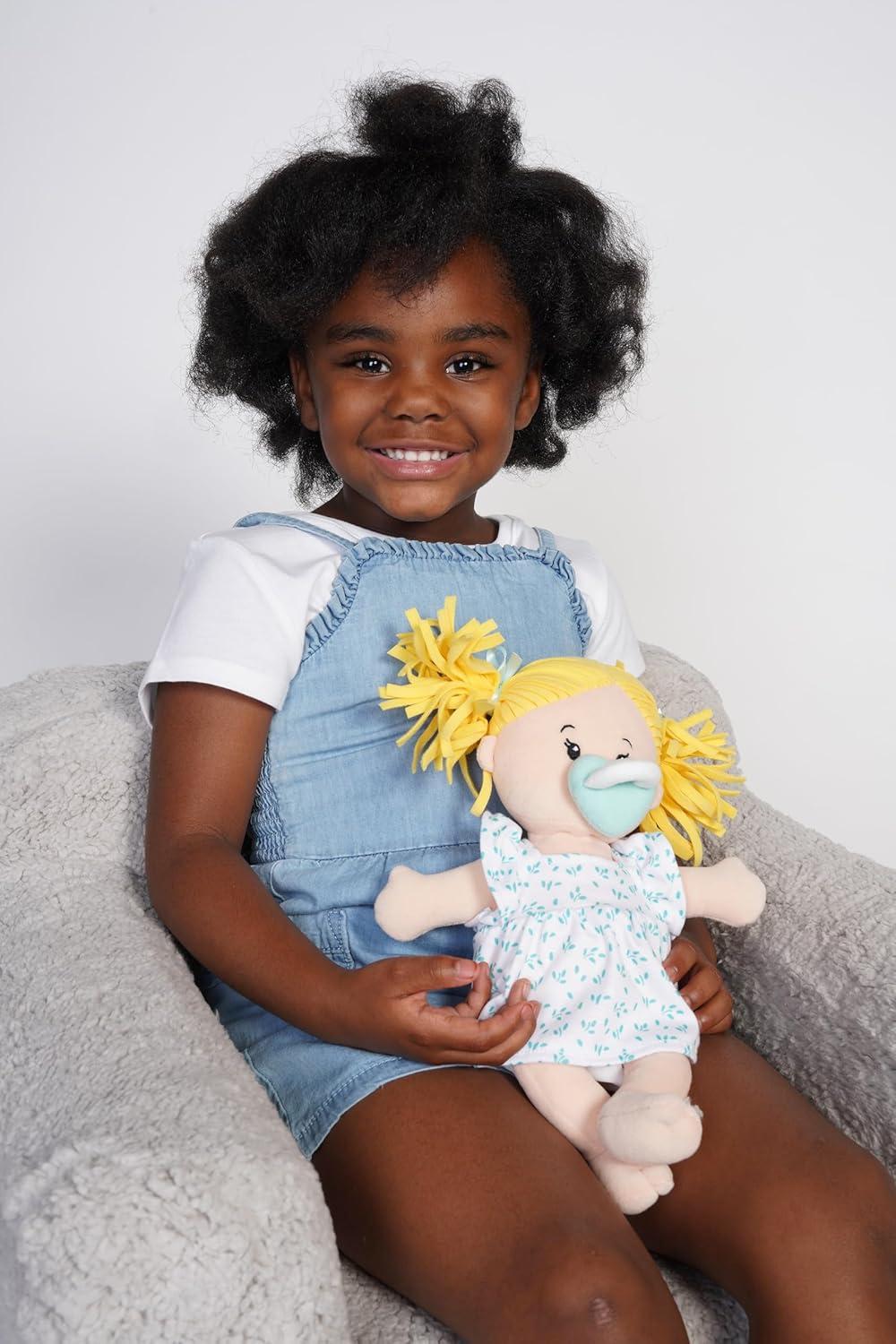 SOFT AND DURABLY CONSTRUCTED: 100% soft doll with embroidered facial features and lightly weighted head.